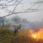 SERANG, DISTRIKBANTENNEWS.COM - Bergerak dengan cepat, Sersan Dua (Serda) Nasari Bintara Pembina Desa (Babinsa) Koramil 0602-19/Cikande Kodim 0602/Serang bersama petugas Pemadam Kebakaran (Damkar) dan masyarakat, berhasil memadamkan api kebakaran lahan kosong yang ditumbuhi ilalang, diperkirakan lahan yang terbakar kurang lebih sekitar 9 (Sembilan) Hektar, bertempat di Desa Gembor Udik, Kecamatan Cikande, Kabupaten Serang Provinsi Banten, Senin Kemarin (23/10/2023).