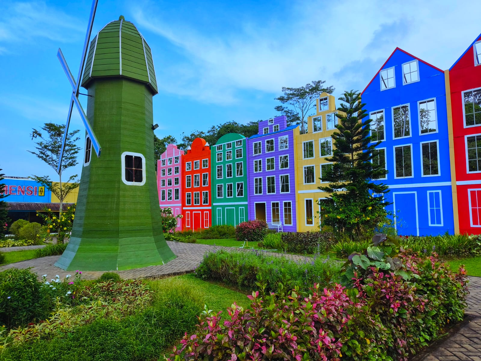 Fasilitas yang ditawarkan di MBS juga sangat menarik. Salah satunya adalah miniatur kincir angin yang menjadi ikon Negara Belanda, memberikan sentuhan khas Eropa. Selain itu, terdapat juga spot-spot foto menarik seperti lukisan 3D, rumah terbalik, dan bahkan rumah jerami.