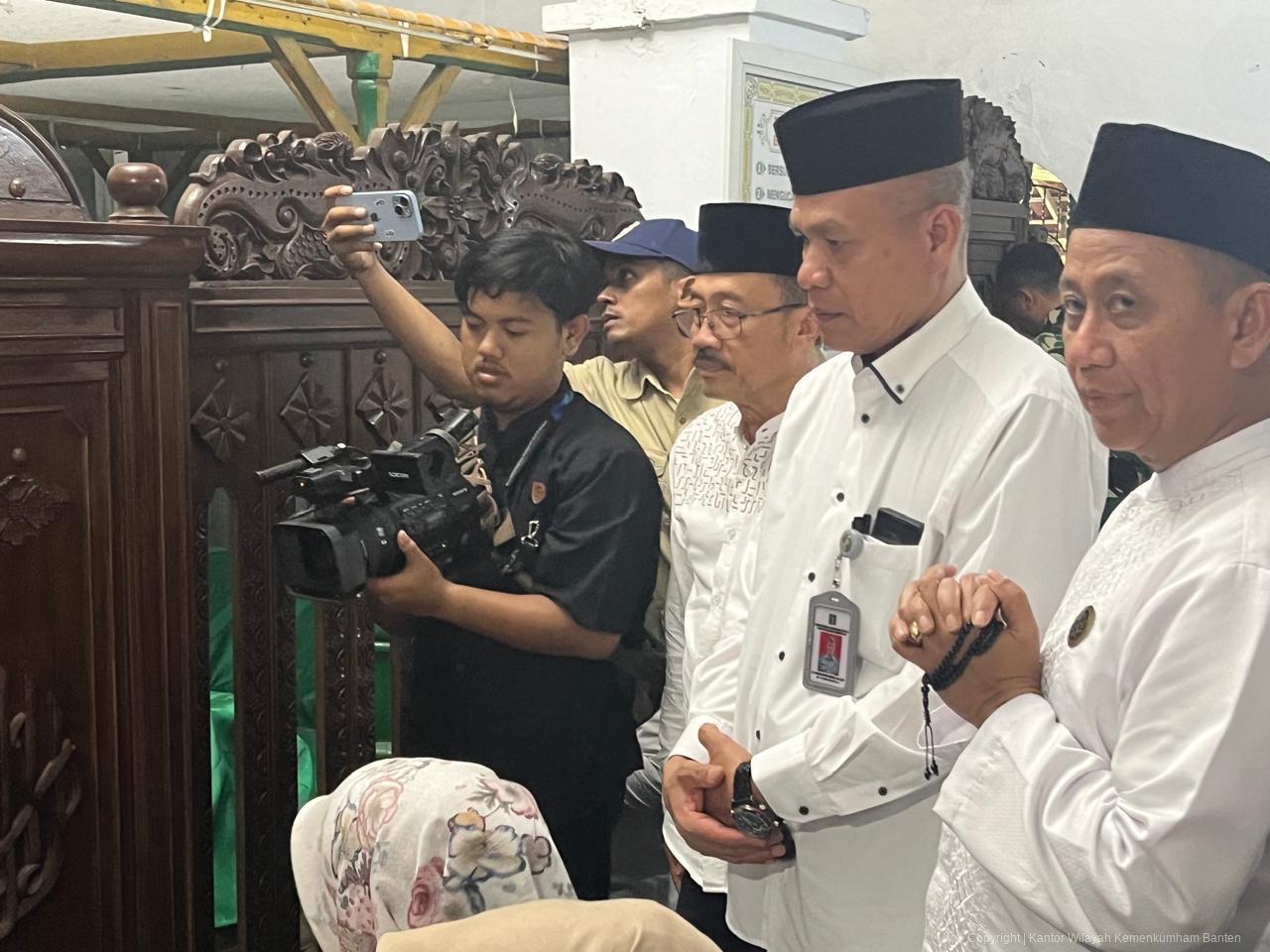 Serang – Kepala Kantor Wilayah Kementerian Hukum Banten, Pagar Butar Butar, turut hadir dalam kegiatan ziarah ke Makam Sultan Maulana Hasanuddin yang dipimpin oleh Gubernur Banten, Andra Soni, di Kesultanan Banten Lama, Kelurahan Banten, Kecamatan Kasemen, Kota Serang, Jumat (03/10/2025).