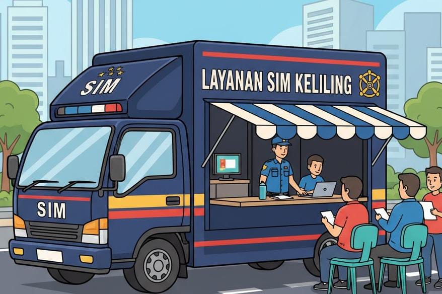 Sebelum datang ke lokasi, pemohon disarankan menyiapkan dokumen persyaratan terlebih dahulu, seperti fotokopi Kartu Tanda Penduduk (KTP), SIM lama yang akan habis masa berlakunya, serta membawa alat tulis seperti pulpen untuk mengisi formulir. Setelah seluruh berkas lengkap, petugas akan memproses data dan memanggil pemohon untuk masuk ke dalam kendaraan layanan SIM Keliling.