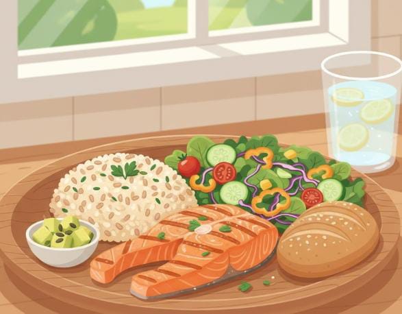 Selain memperhatikan jenis makanan, pola makan bergizi juga perlu diimbangi dengan gaya hidup sehat, seperti rutin berolahraga, cukup tidur, serta mengonsumsi air putih minimal delapan gelas per hari. Kombinasi ini akan membantu tubuh menjaga berat badan ideal, menyeimbangkan kadar gula darah, serta meningkatkan konsentrasi dan produktivitas.