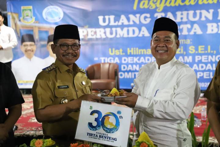 Momen istimewa ini dirayakan dalam acara peringatan HUT ke-30 Perumda Tirta Benteng yang digelar di Gedung Pelayanan Tirta Benteng, Senin (13/10/25). Suasana penuh semangat dan refleksi mewarnai perayaan tiga dekade perjalanan perusahaan yang menjadi tumpuan kebutuhan air bersih warga Kota Tangerang.