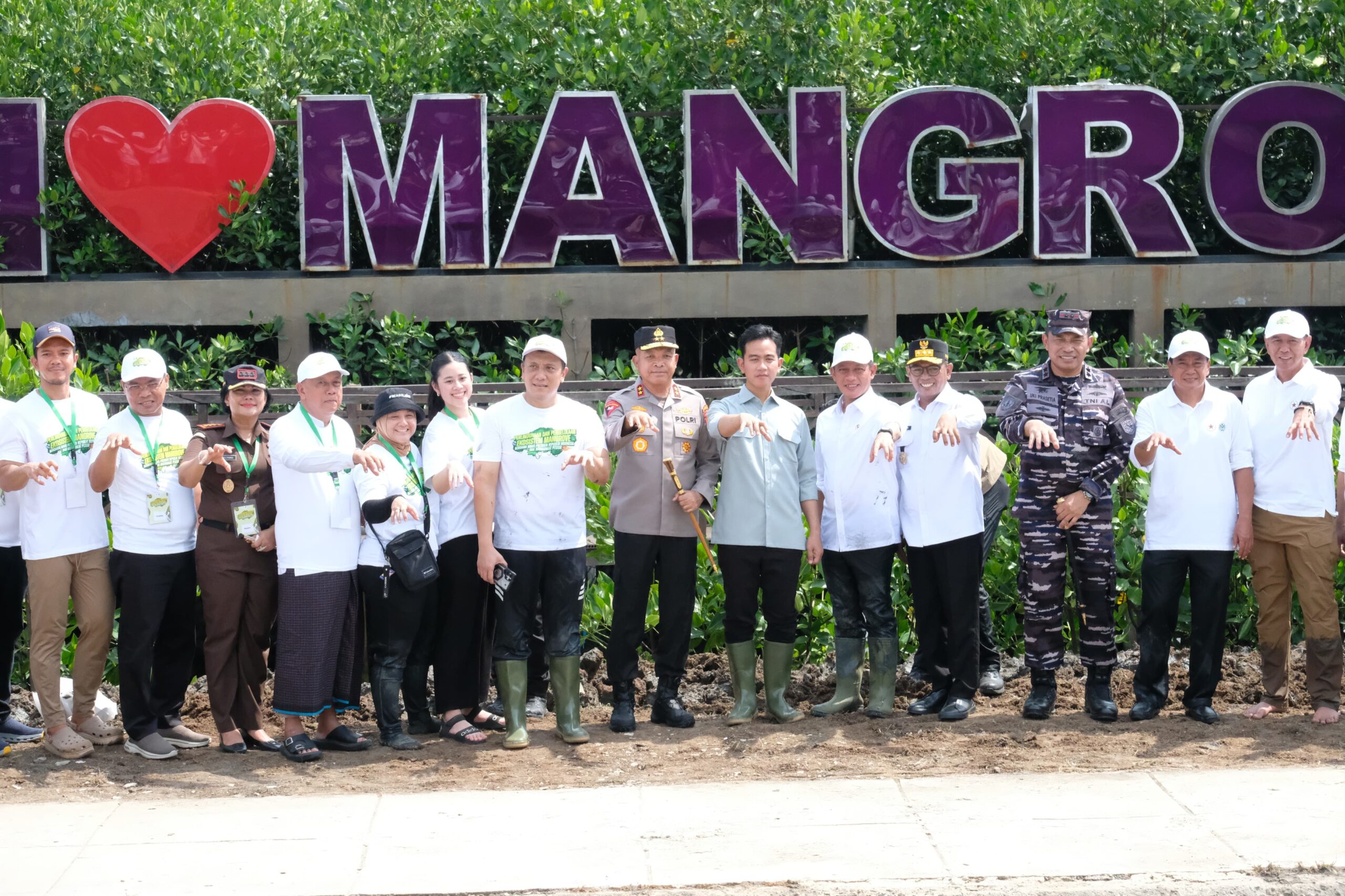 Tangerang – Kapolda Banten Irjen Pol Hengki mendampingi Wakil Presiden Republik Indonesia Gibran Rakabuming Raka dalam kegiatan Perlindungan dan Pengelolaan Ekosistem Mangrove yang digelar di Taman Mangrove Ketapang, Desa Ketapang, Kecamatan Mauk, Kabupaten Tangerang, pada Senin (27/10).