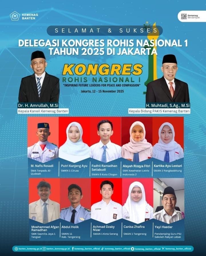 Adapun nama-nama delegasi siswa/i SMA/SMK/sederajat se-Provinsi Banten yang akan mengikuti Kongres Rohis Nasional I sebagai berikut:
