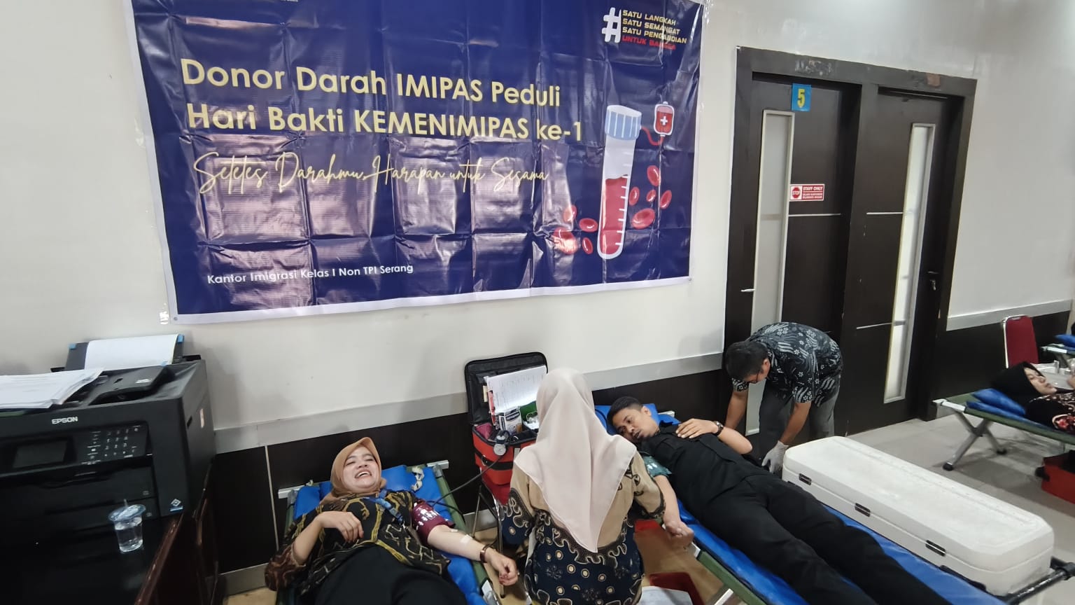 SERANG, 13 November 2025 – Dalam rangka memperingati Hari Bakti Kementerian Imigrasi dan Pemasyarakatan (KEMENIMIPAS) ke-1, Kantor Imigrasi Kelas I Non TPI Serang menyelenggarakan kegiatan Donor Darah “IMIPAS Peduli” bekerja sama dengan Palang Merah Indonesia (PMI).
