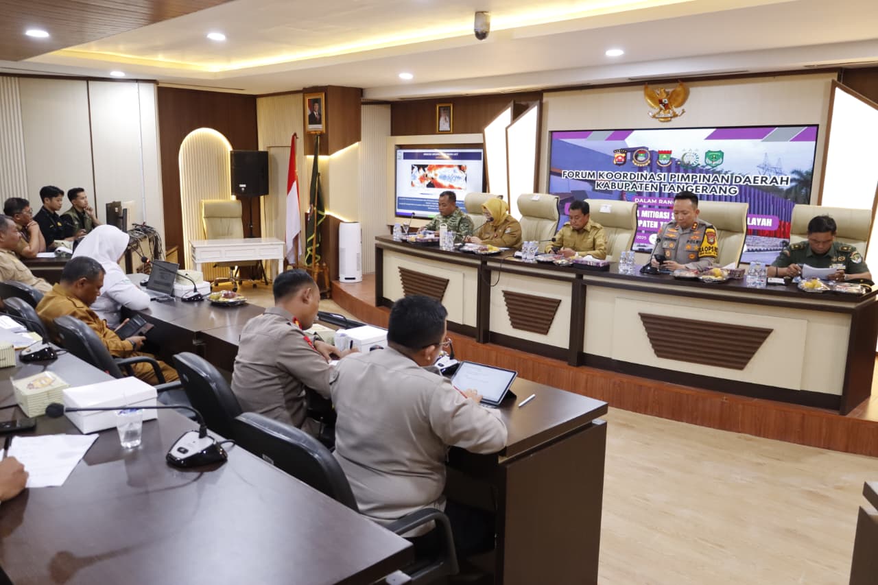 TANGERANG — Pemerintah Kabupaten (Pemkab) Tangerang menggelar rapat koordinasi darurat bersama seluruh unsur Forkopimda yang dipimpin langsung Bupati Tangerang Moch. Maesyal Rasyid di Ruang Rapat Wareng, Gedung Bupati Tangerang, Selasa (18/11/25).