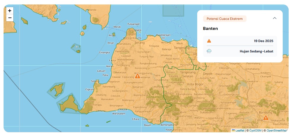 Serang – Polda Banten kembali mengimbau masyarakat untuk meningkatkan kewaspadaan terhadap potensi cuaca ekstrem berdasarkan pembaruan informasi dari Badan Meteorologi, Klimatologi, dan Geofisika (BMKG) Banten per Jumat, 19 Desember 2025.