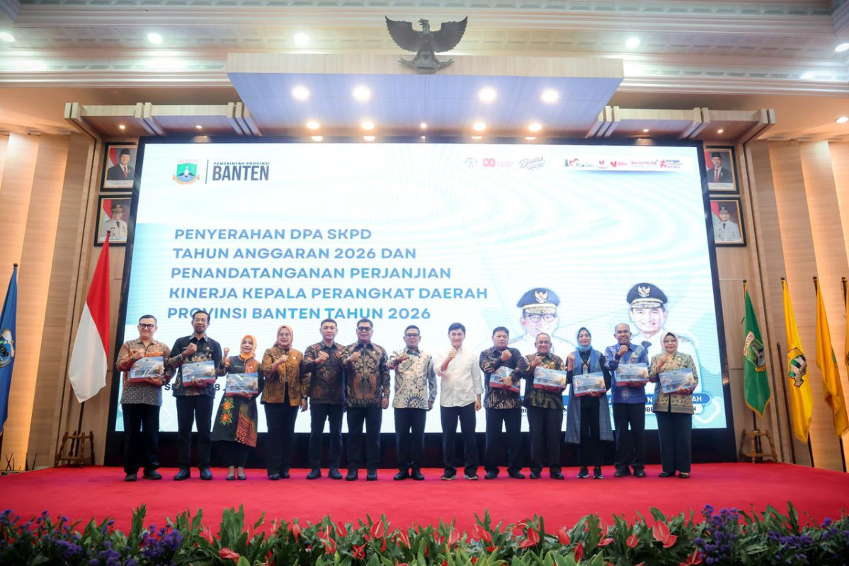 KOTA SERANG – Pemerintah Provinsi Banten resmi menggeber pelaksanaan program pembangunan tahun 2026. Gubernur Banten Andra Soni secara langsung menyerahkan Dokumen Pelaksanaan Anggaran (DPA) Satuan Kerja Perangkat Daerah (SKPD) Tahun Anggaran 2026 sekaligus menyaksikan penandatanganan Perjanjian Kinerja Kepala Perangkat Daerah di Lingkungan Pemprov Banten.