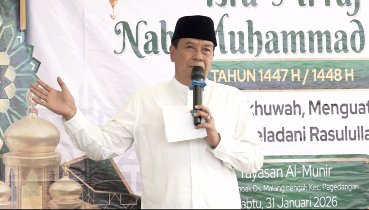 Tangerang,–Bupati Tangerang, Moch. Maesyal Rasyid menghadiri pengajian rutin yang dirangkaikan dengan peringatan Isra Mi’raj Nabi Muhammad SAW Majelis Taklim Al-Munir yang digelar di Gedung Majelis Taklim Al-Munir Kec. Pagedangan, Sabtu (31/01/26)
