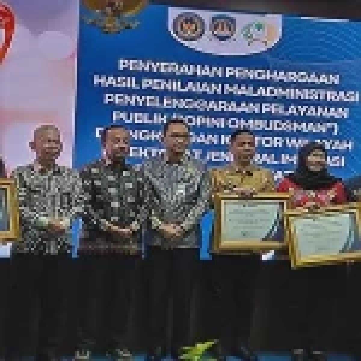 Kepala Balai Pemasyarakatan Jakarta Timur/Utara Margono menerima penghargaan dari Ombudsman Republik Indonesia atas pelayanan publik yang baik. (Dok. Ist)